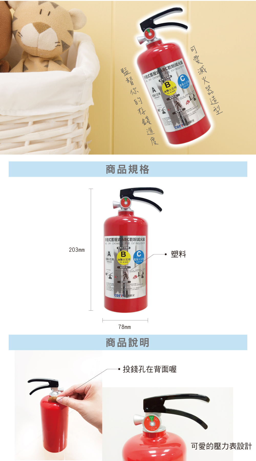 滅火器存錢筒,可愛的造型,讓您再也不會忘記要存錢喔~